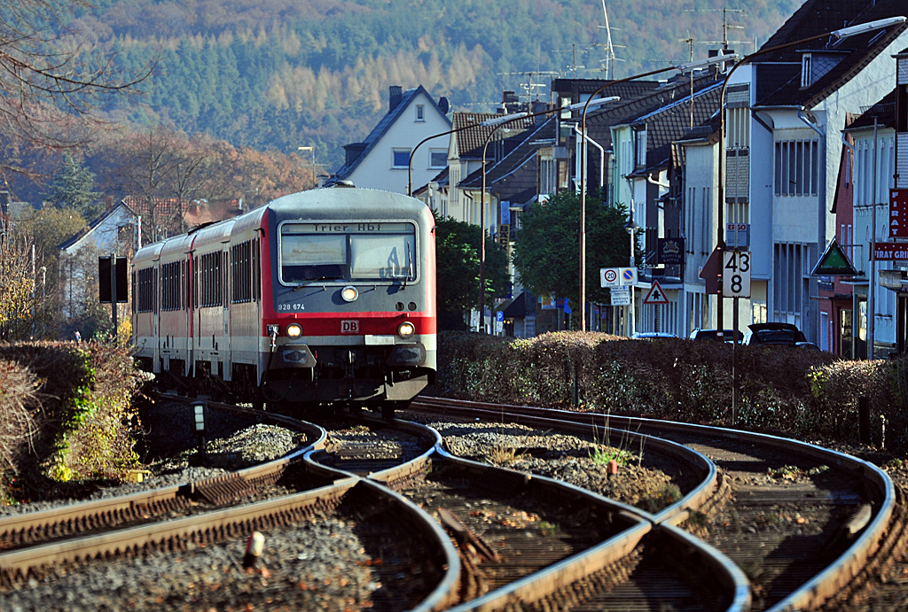 928 674 nach Trier kurz vor der Einfahrt in den Bf Mechernich - 09.11.2011