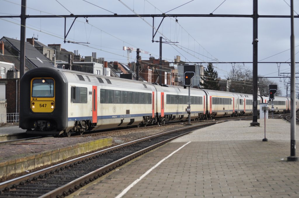 Diese beiden Gumminasen fahren als IC von Antwerpen Central in den Bahnhof Gent-St.-Pieters ein. Aufgenommen am 06.01.2012