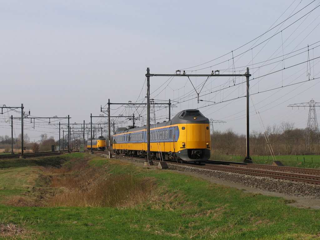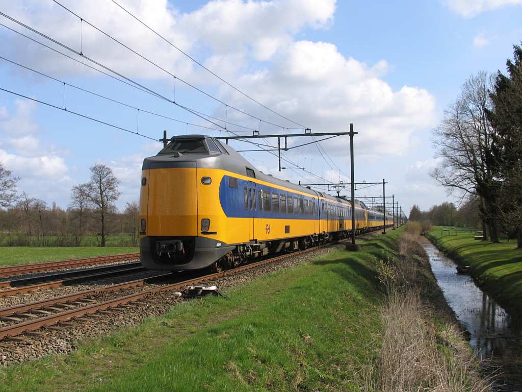 Koplopers 4031, 4213 und 4095 mit IC 760 Groningen-Schiphol bei Haren am 16-4-2010.