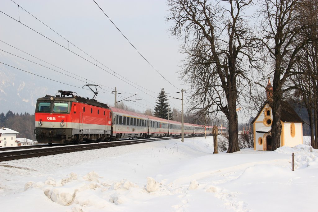 ÖBB 1144 228 mit zieht einem InterCity bei Brixlegg am 11.02.12.