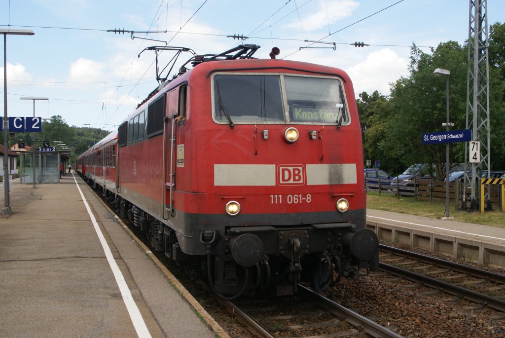 Sonderzug zur Landesgymnaestrada von Offenburg nach Konstanz am 5.6.2011 auf der Schwarzwaldbahn mit einer 111-061-8