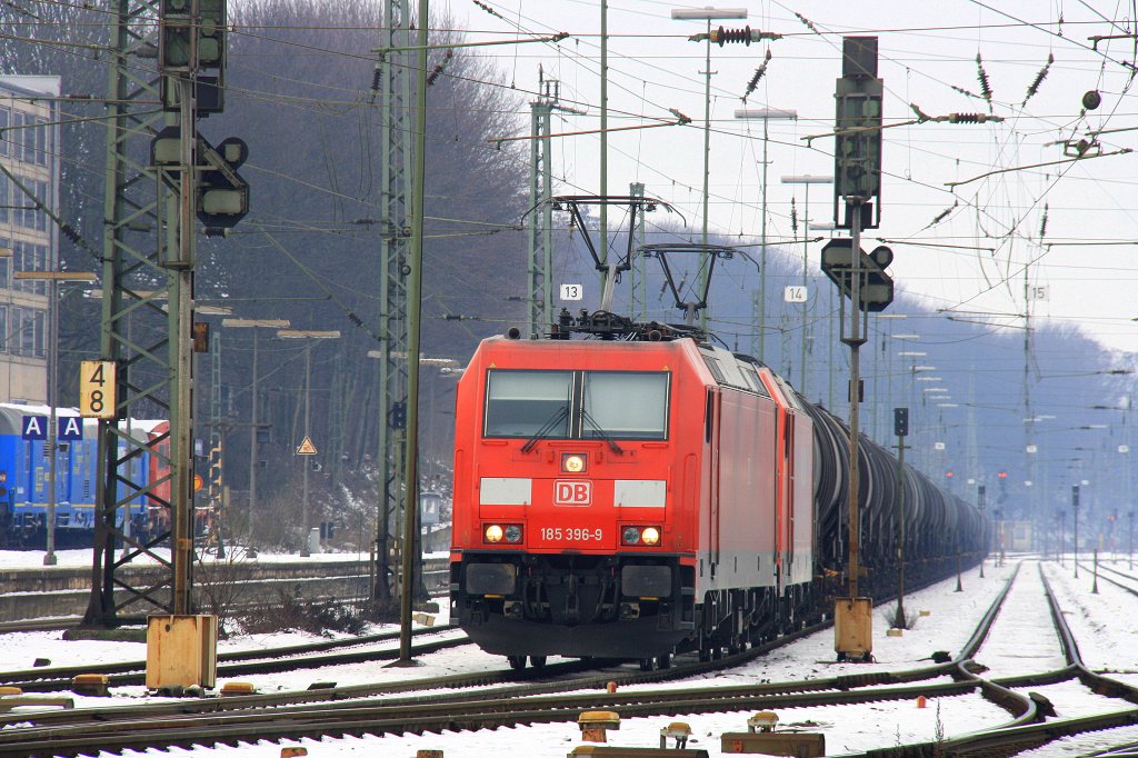 185 396-9 und 185 255-7 wurden am 12.02.2012 in Aachen West an einen Kesselzug gefahren und vom Tf angekoppelt. Der Zug wurde von einem Cobra-Doppel aus Belgien nach hier gebracht und von der 185er Doppeltraktion später Richtung Köln gezogen.