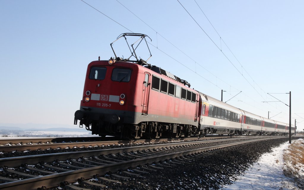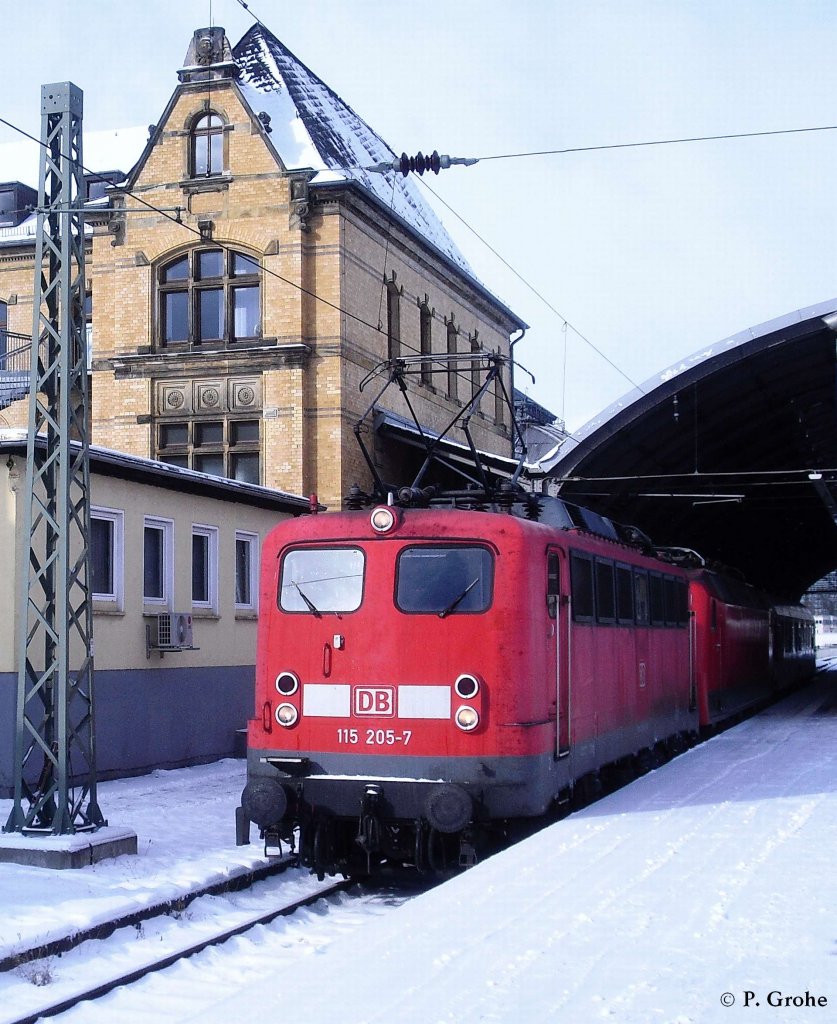 DB 115 205-7 vor PbZ 2467 Berlin Rummelsburg - Leipzig Hbf., fotografiert in Halle Saale Hbf. am 09.02.2012