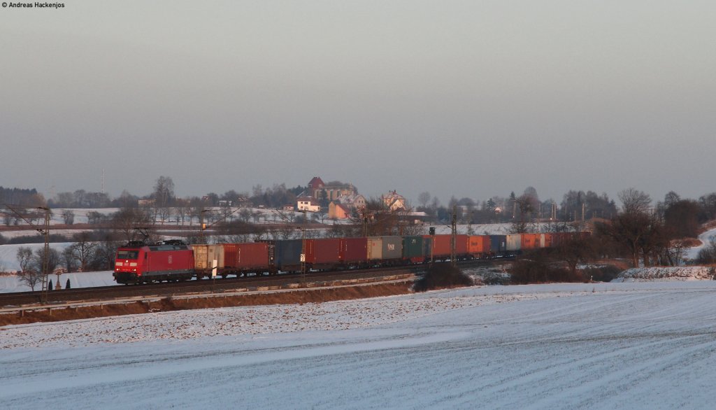 232 359 mit einem gemischten Güterzug am 10.02.2012 bei Sulzbach-Rosenberg.