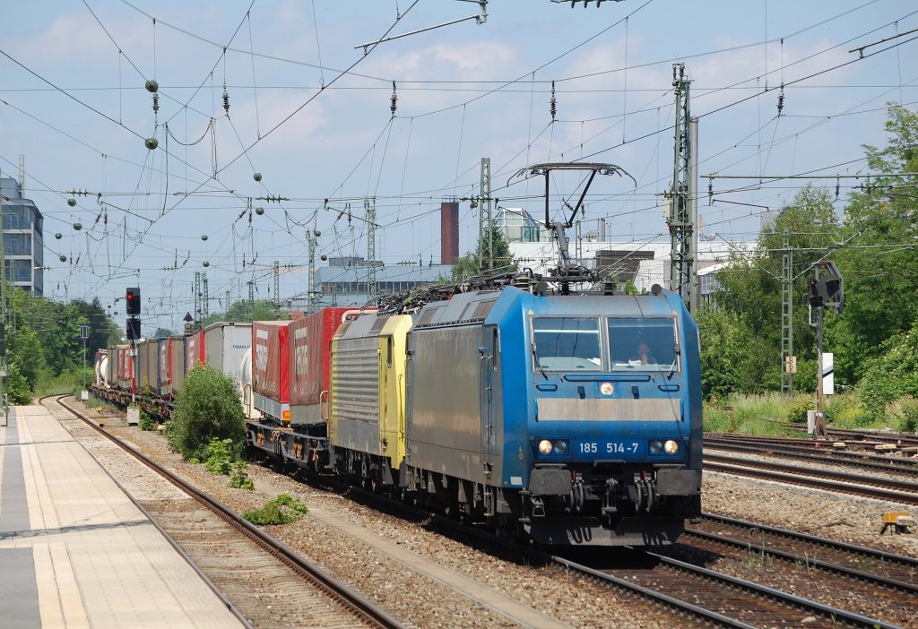 185 514-7 + 189 924 mit einem KLV am 04.06.2011 am Heimeranplatz in München.