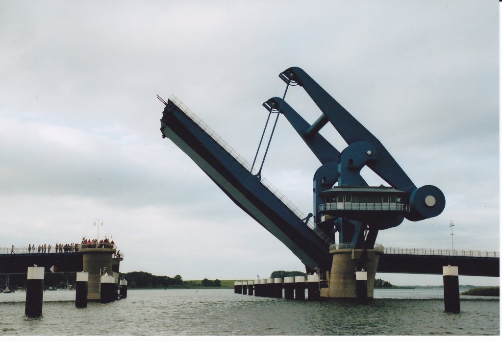 die Peenebrücke in Wolgast im Juli 2011 ... leider hatten wir auf dem Segelboot nicht die Zeit um auf einen Zug zu warten.