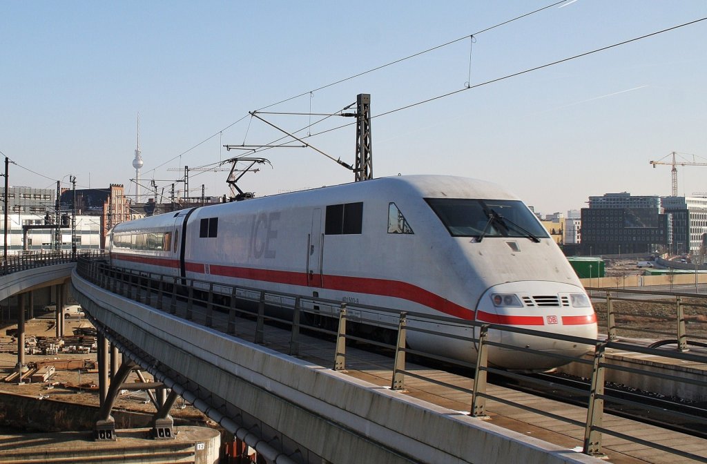 Hier 401 503-8 "Neu-Isenburg" als ICE694 von Stuttgart Hbf. nach Berlin Ostbahnhof, bei der Ausfahrt am 30.1.2012 aus Berlin Hbf.