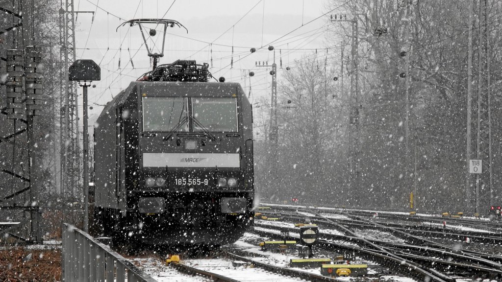 MRCE-Lok 185 565-9, am 14.02.2012 abgestellt im Heilbronner Hauptbahnhofsbereich, wartend auf besseres Wetter und bessere Zeiten...