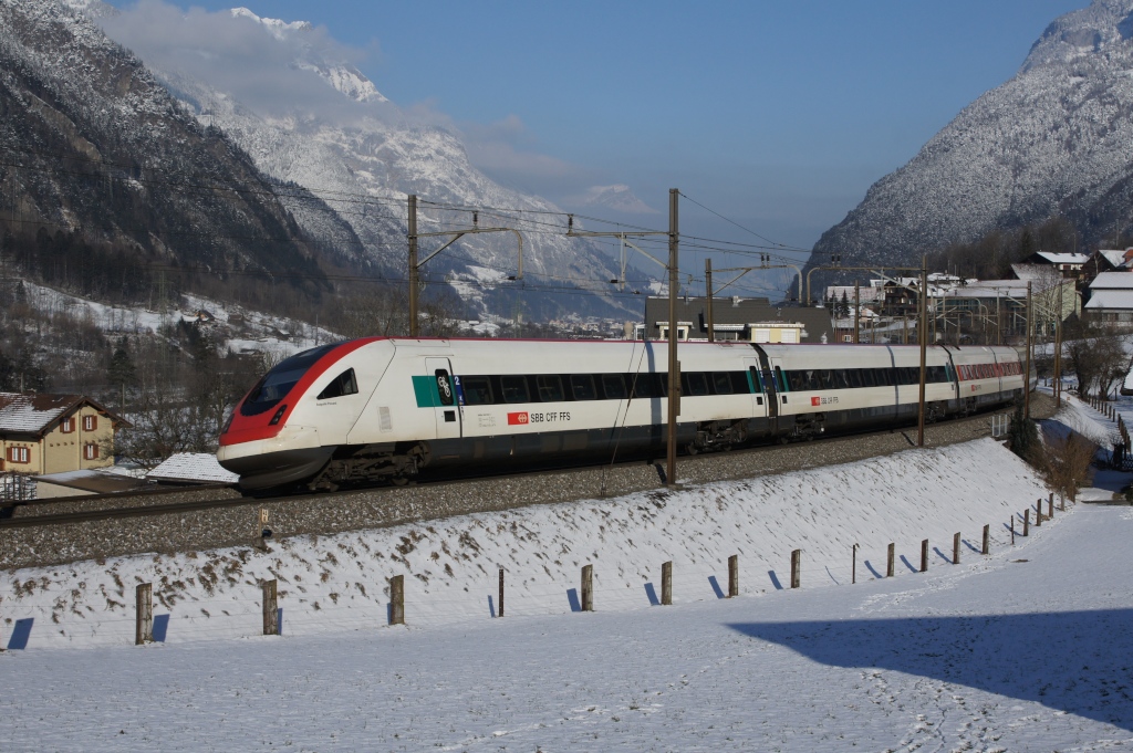 Re 460 101-9 zieht am 3.2.12 den IC 731 von Bossière Richtung Grandvaux.