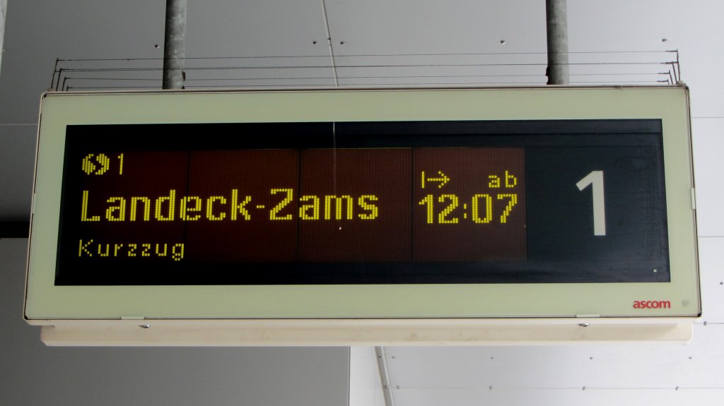 Zugzielanzeiger für eine S1 von Fritzens-Wattens nach Landeck-Zams am 14.2.2012 in Innsbruck Hbf.