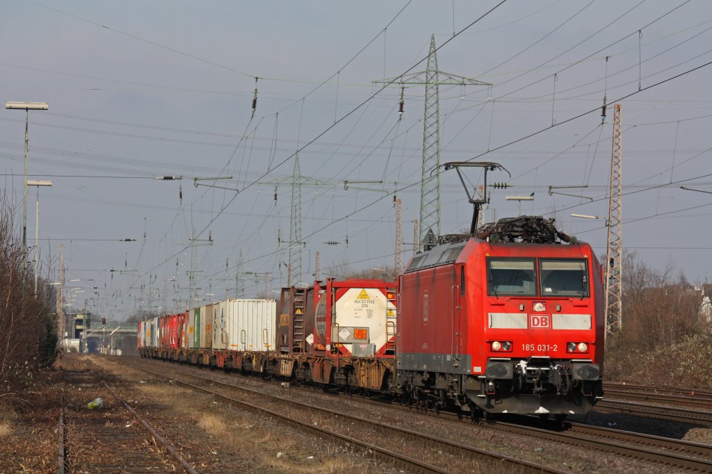 Die 185 031 fuhr am 11.2.12 mit dem KT 41286 von Duisburg Ruhrort Hafen nach Venissieux durch Ratingen-Lintorf.