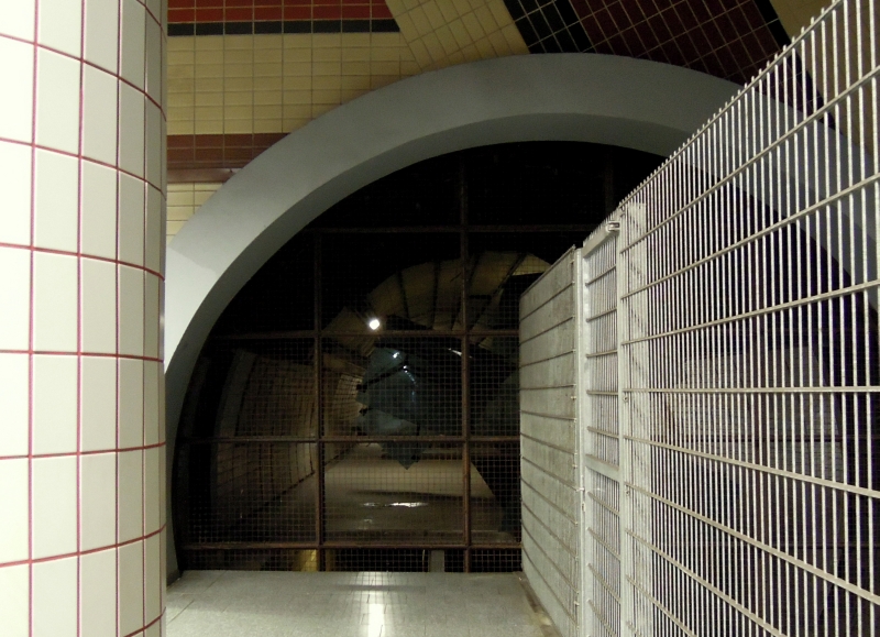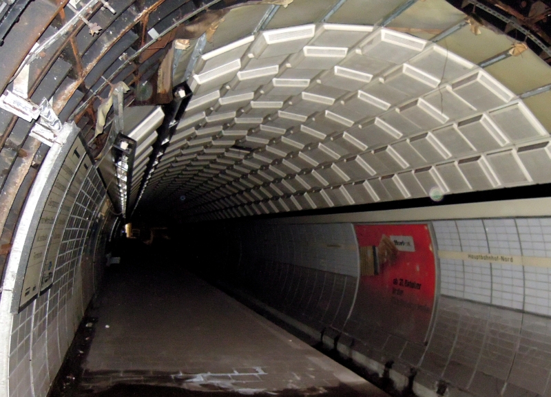 In der Hamburger U-Bahnstation "Hauptbahnhof-Nord" gibt es zwei fertig gestellte, aber nicht genutzte Bahnsteige. Sie sind mit Gittern abgesperrt, man kann aber reingucken. Hier sieht man die Gesamtsituation. 16.2.2012