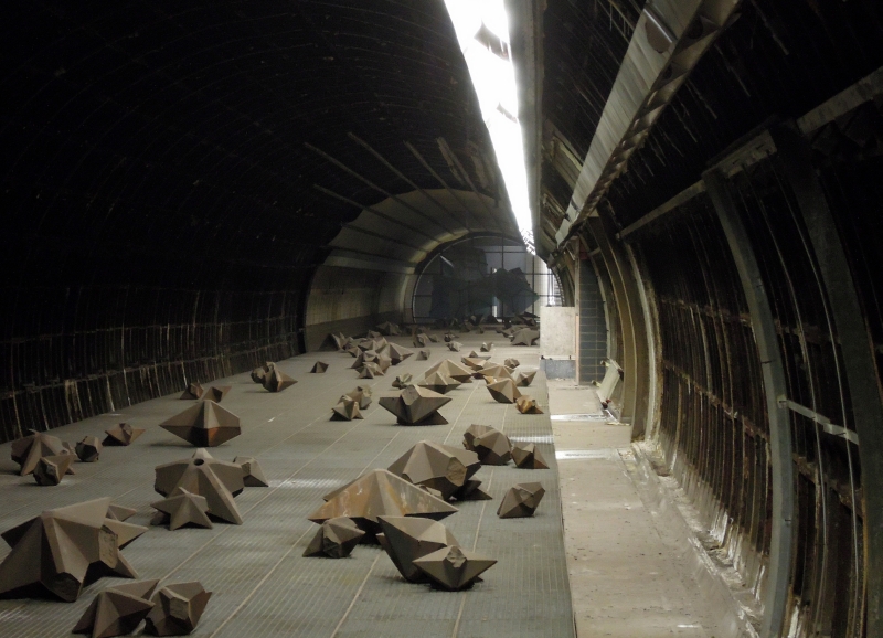 In der Nordröhre gibt es eine Kunstinstallation, die man aus verschiedenen Blickwinkeln betrachten kann. U-Bahnstation "Hauptbahnhof-Nord" in Hamburg, 16.2.2012