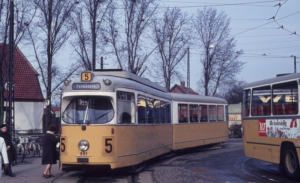 København / Kopenhagen Københavns Sporveje (KS) SL 5 (DÜWAG/Kiepe-GT6 881) Husum, Frederikssundsvej / Islevhusvej am 4. April 1972. - Scan eines Diapositivs.