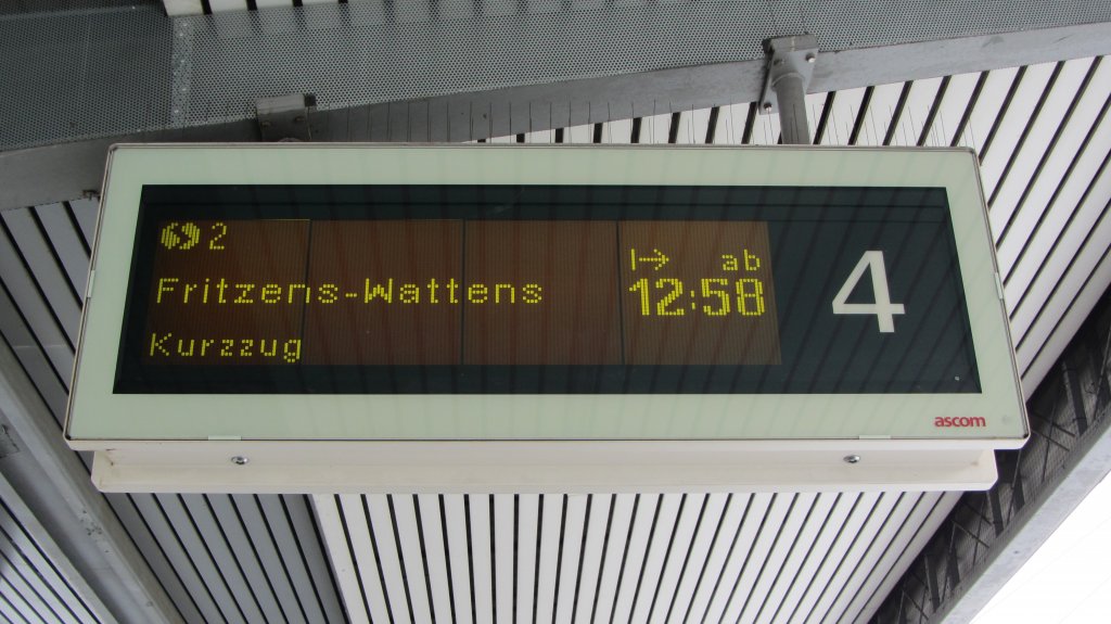 Zugzielanzeiger für S2 (Ötztal-Fritzens-Wattens) in Innsbruck Hbf.(14.2.2012)