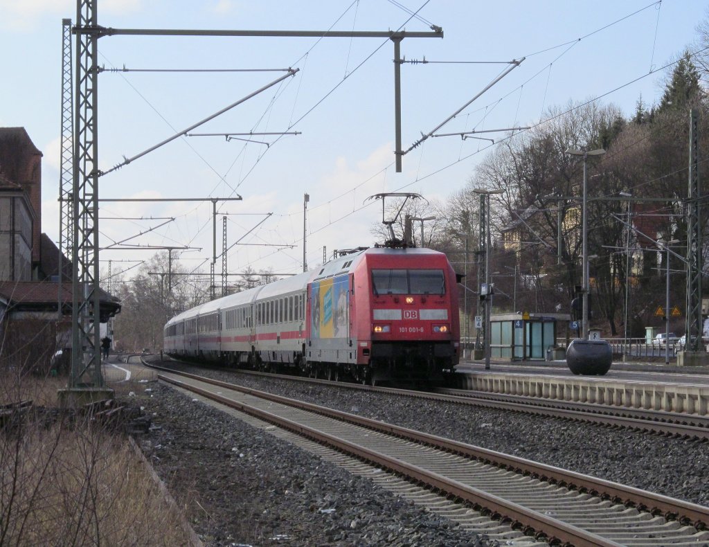 101 001-6 "Klagenfurt am Wörthersee" zieht am 20. Februar 2011 den IC 2208 durch Kronach.