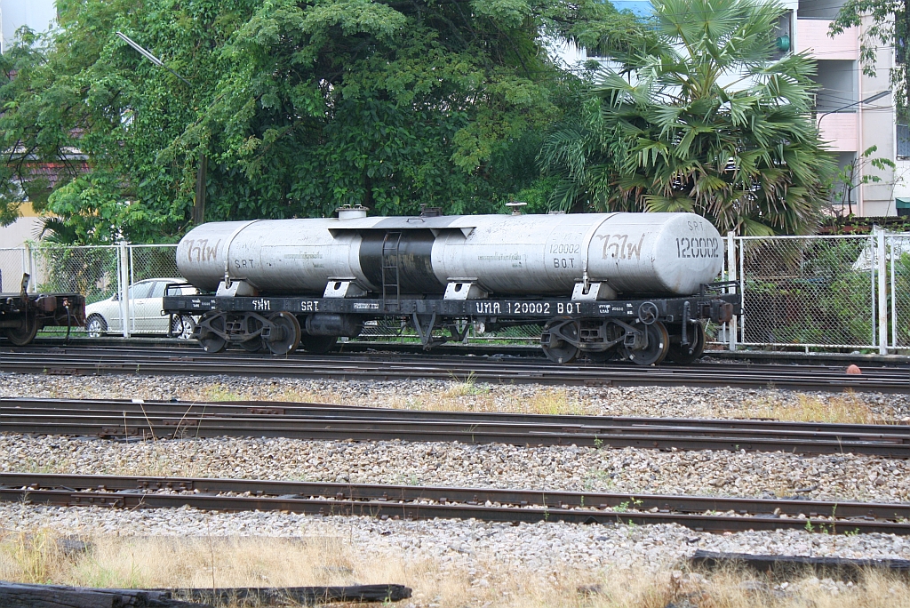 บ.ท.ค.120002 (บ.ท.ค. =B.O.T./Bogie Oil Tank Wagon) am 12.Jänner 2012 im Bf. Hat Yai Junction.