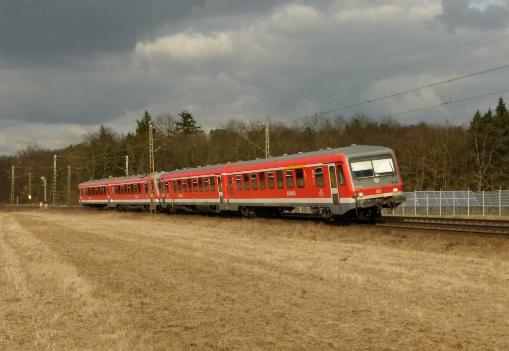 628 310 und 628 307 sind als RB Mannheim - Waghäusel am 20.02.2012 kurz vor Waghäusel