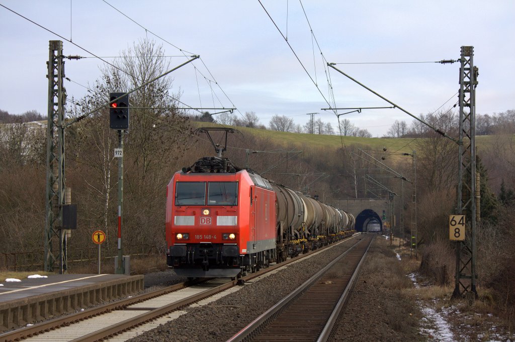Die 185 148-4 am 21.02.2012 in Eilendorf.