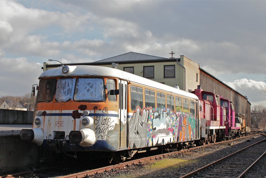 Ein schönes Lichtspiel lies sich am 20.2.2012 festhalten. RSE VT6 (Typ MAN Schienenbus) bei Bonn-Beuel.