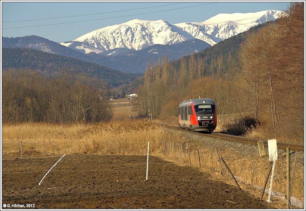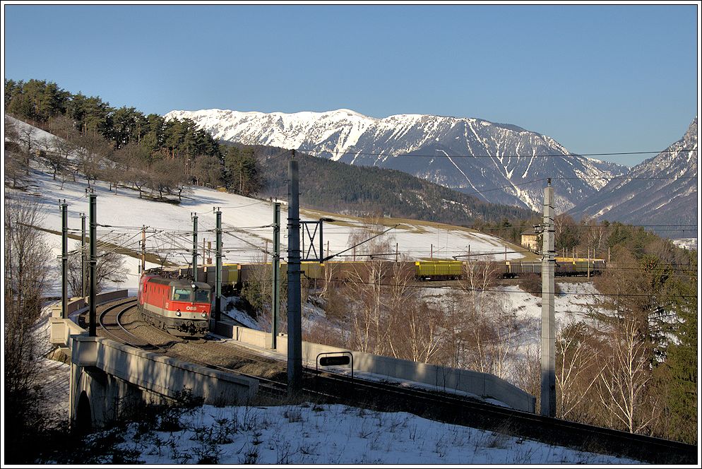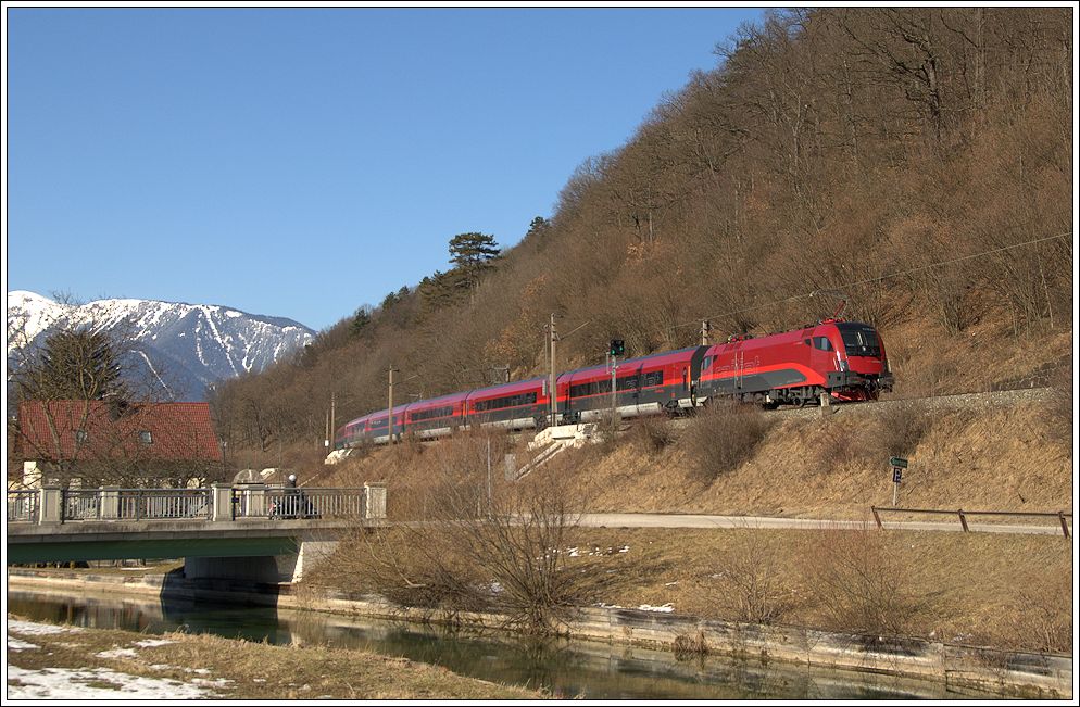 Railjet Richtung Graz/Villach bei Schlöglmühl an der Semmeringbahn, 21.2.2012