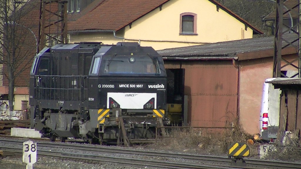 Zwei V 221 und eine Mak G 2000 BB von RTS stehen am 21.02.2012 abgestellt im Bahnhof Gemünden am Main.