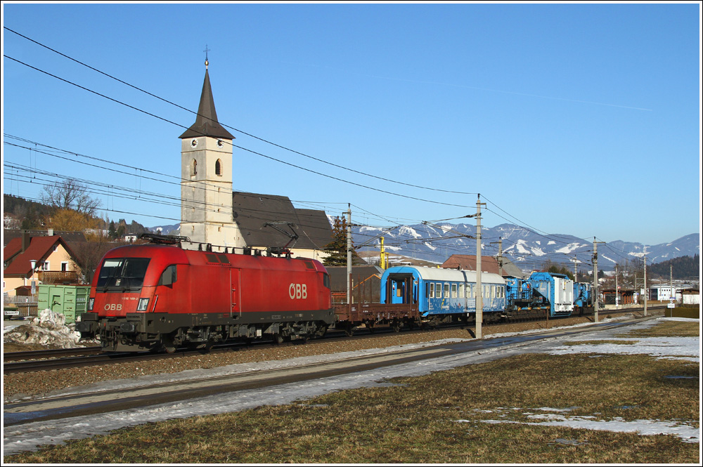 1116 169 fährt mit Trafozug SGAG 90047 von Gleisdorf nach Voest Alpine Linz. Kammern 22.2.2012