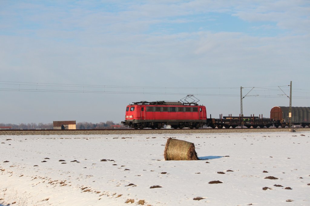 140 535-6 mit einem Güterzug bei Übersee. Aufgenommen am 21.1.12.