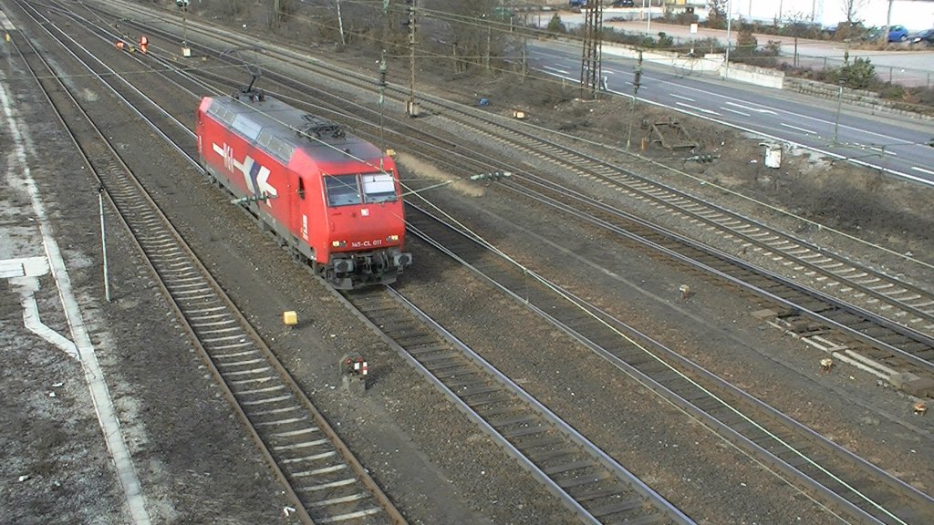 145 CL-011 verlässt Gemünden am Main in Richtung Würzburg um dort einen Kesselwagenzug abzuholen. 21.02.2012