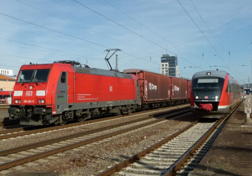185 402-4 (Green Cargo) zieht den Opelzug am 22.02.2012 durch Kaiserslauten