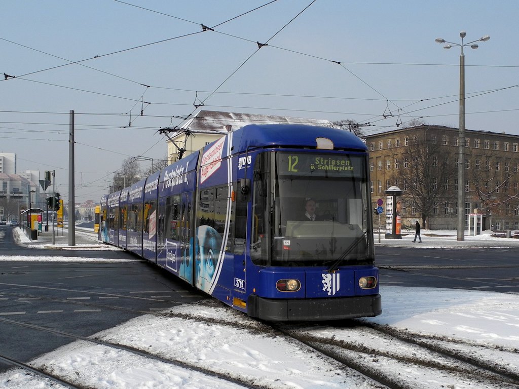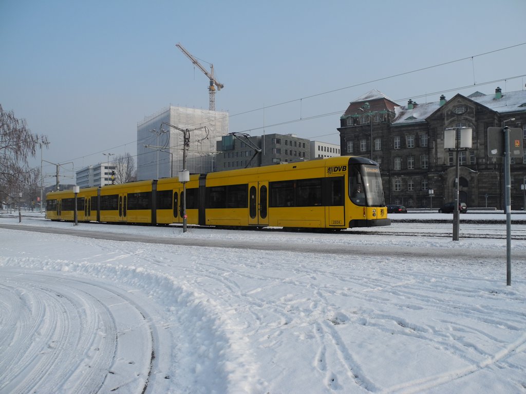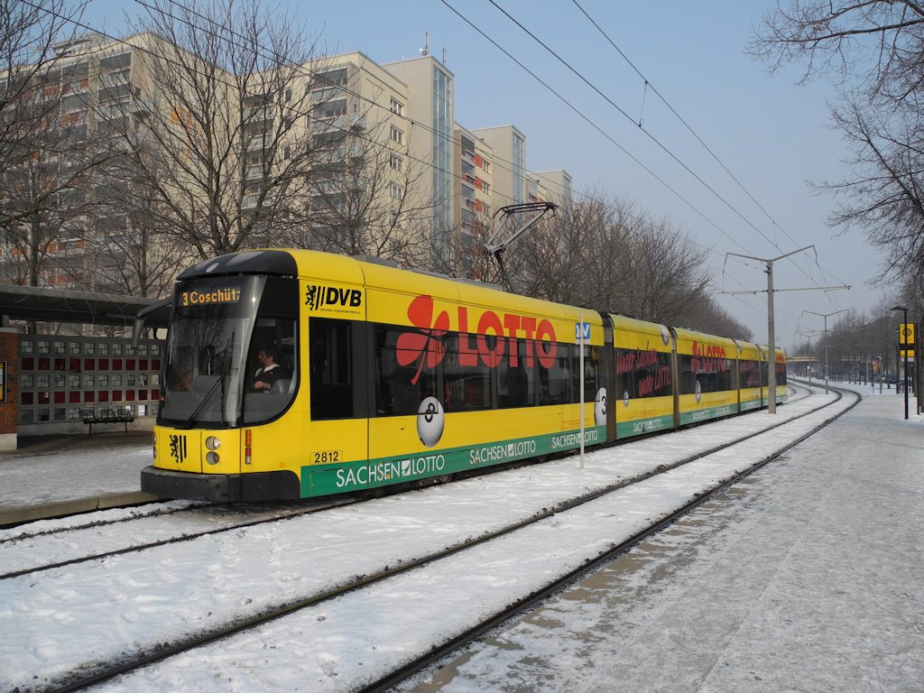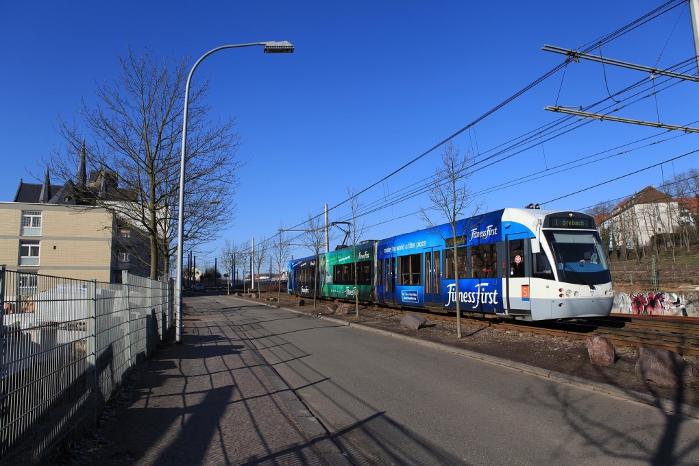 Saarbahn Tw 1012 in der Frankenstraße kurz vor Erreichen des Hauptbahnhofs, 20.02.2012.