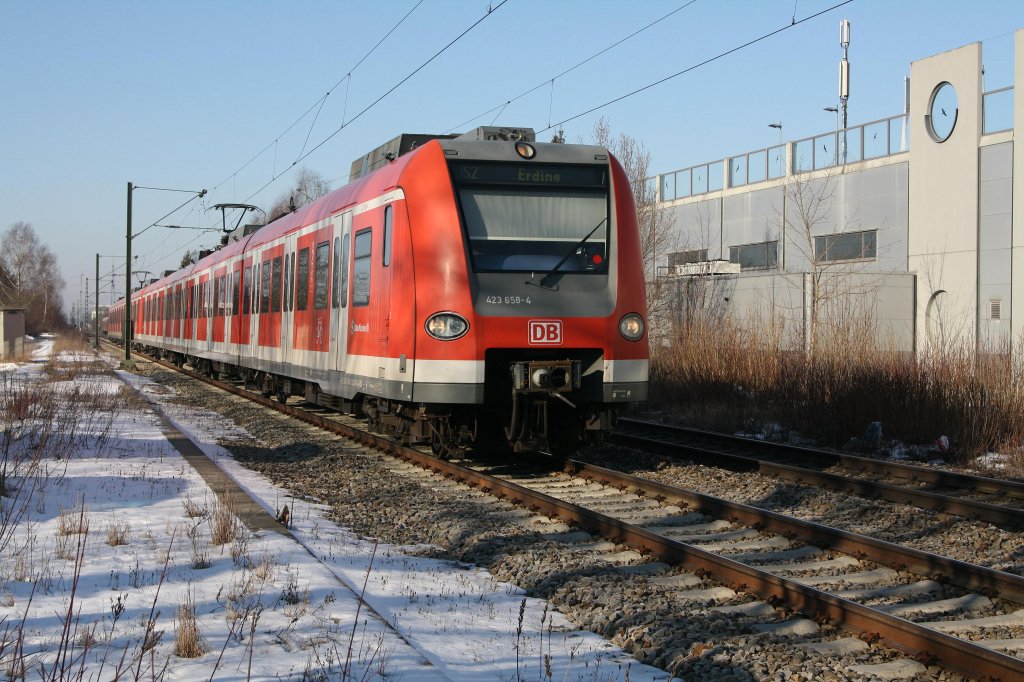 423 658-4 fährt am 22.02.12 als S2 nach Erding gerade in Poing ein.