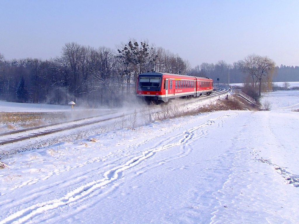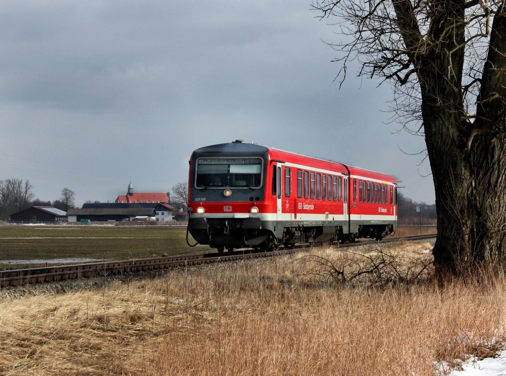 Der 628 585 als RB nach Mühldorf am 20.02.2012 unterwegs bei Altötting.