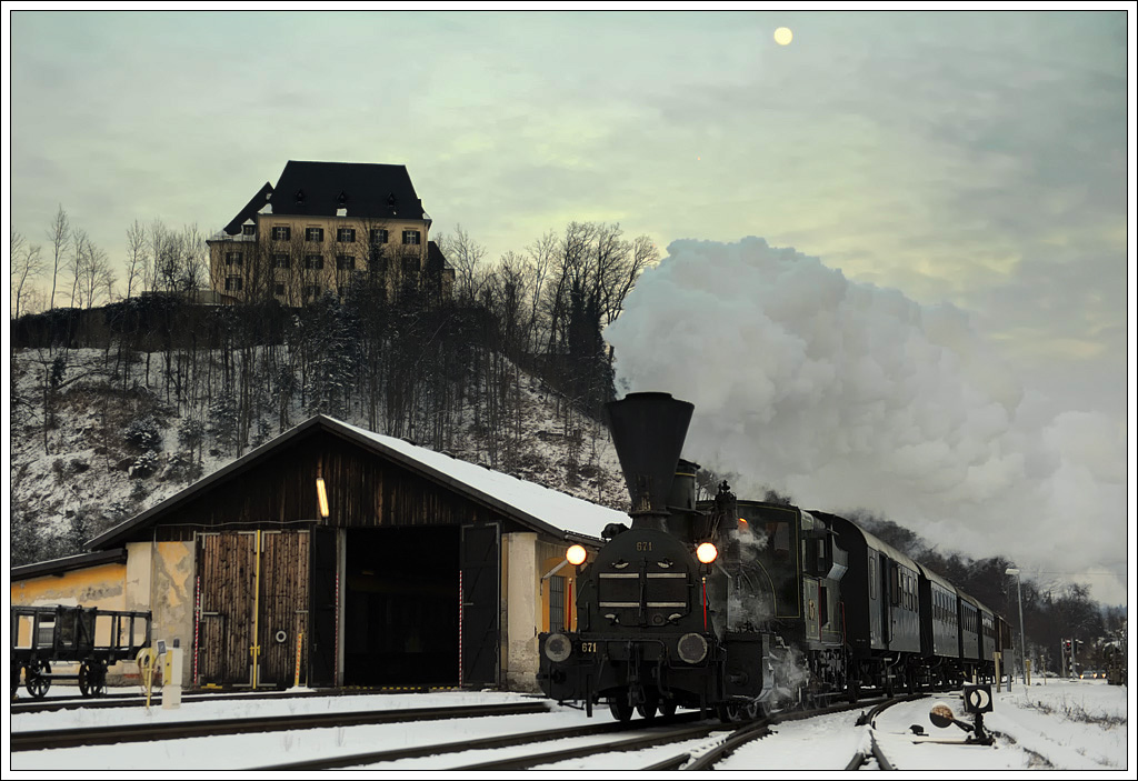 Während die englische Reisegruppe am 5.2.2012 mit dem Stainzer Flascherlzug von Preding nach Stainz und wieder retour fuhren, kümmerte sich die Lokmannschaft, hier auf dem Bild Karl-Heinz, in der Zwischenzeit um die 671.