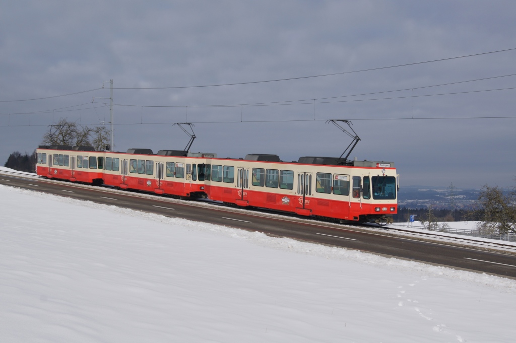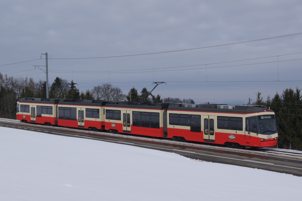 Be 4/6 68 und Be 4/6 61 fahren am 17.2.12 von Scheuren Richtung Neuhaus.