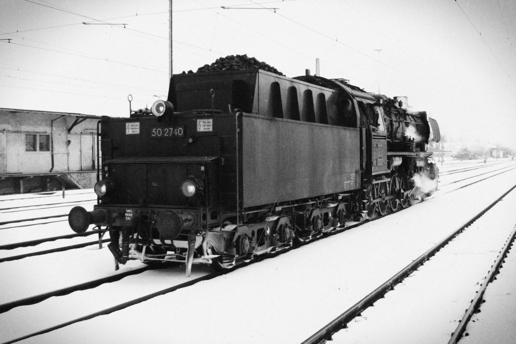 Dampflokomotive der Baureihe 50 (50 2740) im Bahnhof Villingen (Schwarzwald)