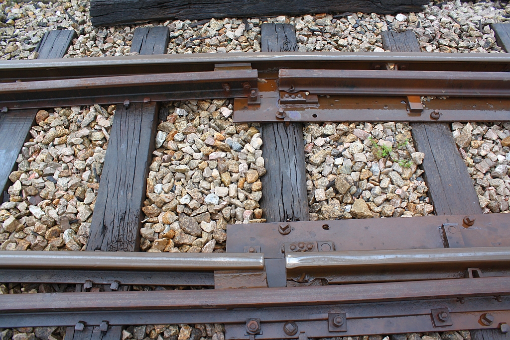 Ein Schienenstoß von gut 5cm !!! ist in Thailand durchaus möglich. Weiche 43 im Bf. Hat Yai Junction am 12.Jänner 2012. Die Weiche 43 muß auf dem Weg von und zu dem Depot befahren werden, ist also betrieblich sehr wichtig.