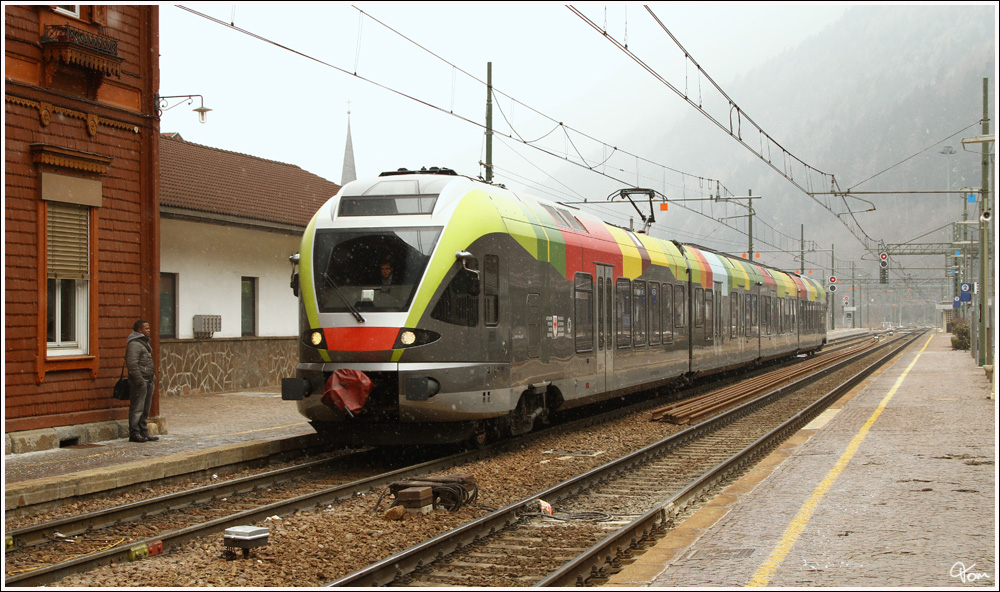 Flirt ETR 155 der Treno Alto Adige (Südtirol Bahn) fährt von San Candido nach Fortezza.
