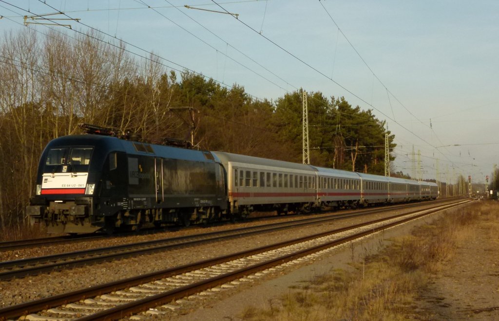 MRCE Taurus ES 64 U2-061 zieht den IC 2056 Heidelberg - Saarbrücken am 21.02.2012 durch Kindsbach
