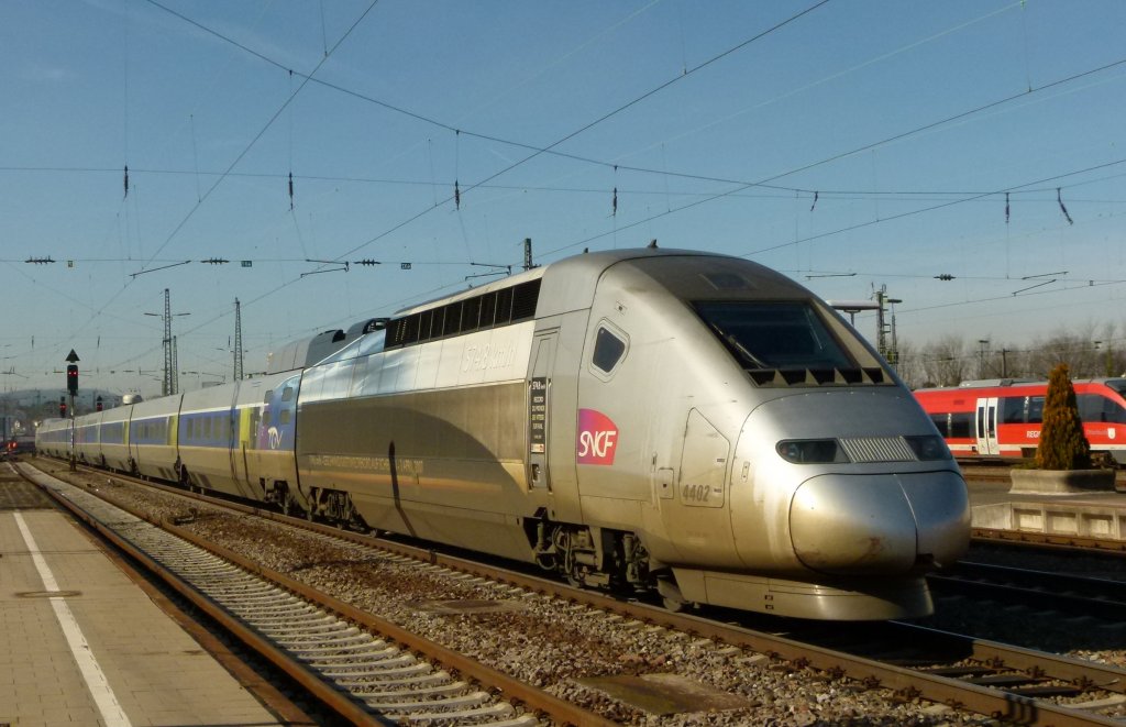 Weltrekord TGV 4402 ist als TGV 9553 Paris Est - Frankfurt (Main) am 22.02.2012 in Kaiserslautern