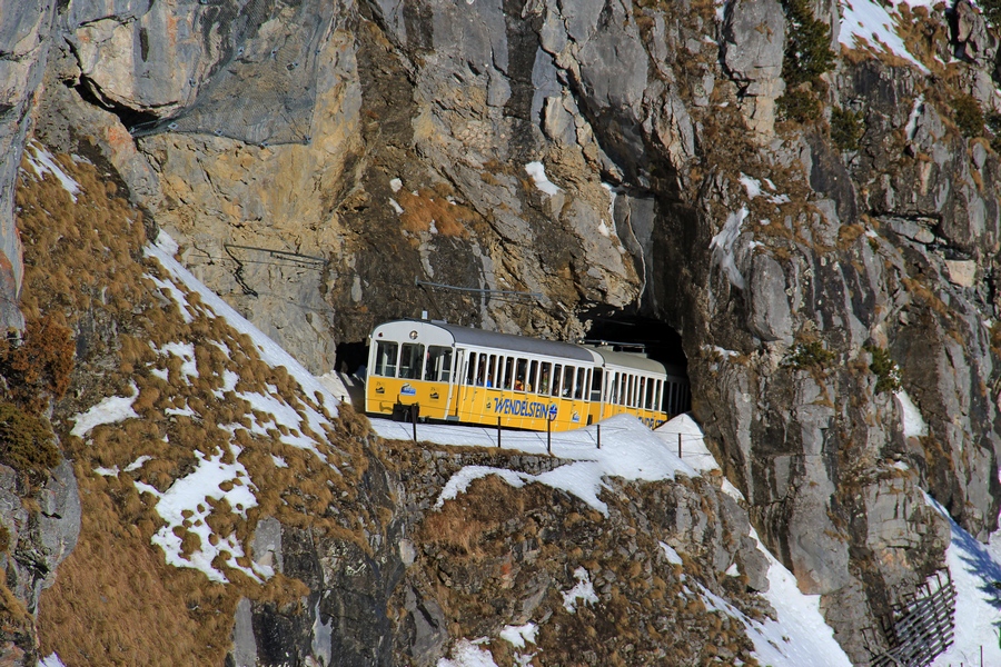 RABDe 500 015-3 fährt am 6.2.12 von Intschi Richtung Gurtnellen. Leider verschwand diese gute Fotostelle nach diesem Bild im Schatten und ich musste mir eine neue Stelle suchen.