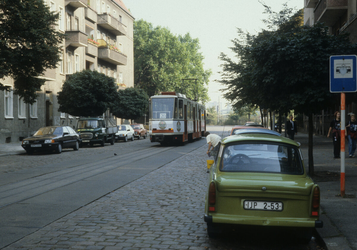 Berlin BVB SL 20 (KT4D 219 072-1 (CKD 1978)) Lichtenberg, Siegfriedstraße am 6. Oktober 1991. - Scan eines Diapositivs. Kamera: Leica CL.