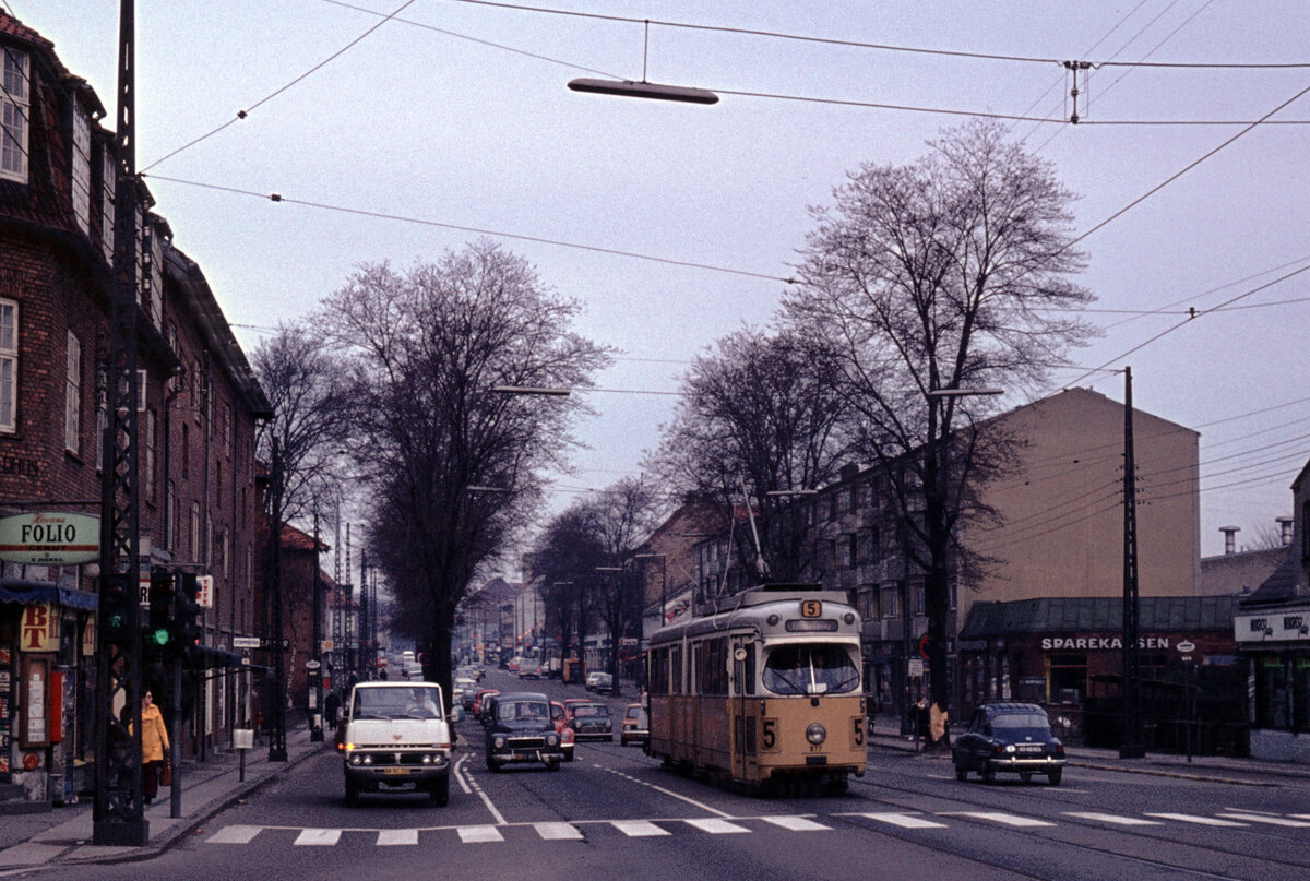 København / Kopenhagen Københavns Sporveje (KS) SL 5 (DÜWAG/Kiepe-GT6 877) Husum, Frederikssundsvej / Husumvej am 4. April 1972. - Scan eines Diapositivs.