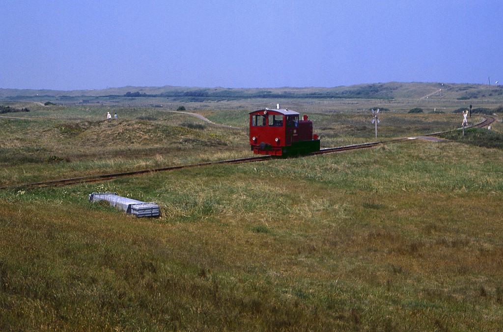 329 502 unternimmt einen Abstecher auf die Weststrecke zum Leuchtturm, Aufnahme kurz hinter dem Abzweig, 20.05.1989.