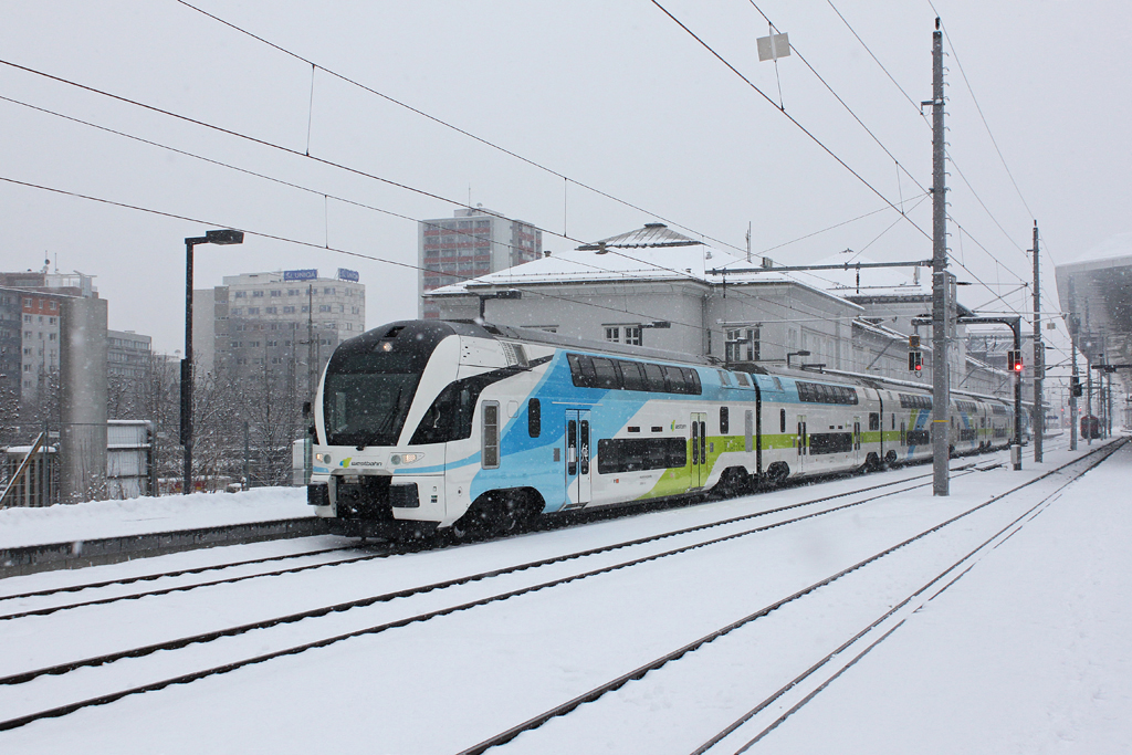 4010 002 der Westbahn am 14.02.2012 bei der Ausfahrt in Salzburg Hbf.