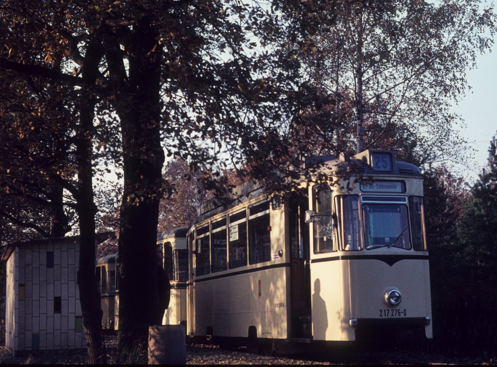 Berlin (Ost) BVB SL 25 (Sw/LEW-Tw 217 276-0) Rahnsdorf am 3. November 1973. - Scan eines Diapositivs. Kamera: Minolta SRT-101.