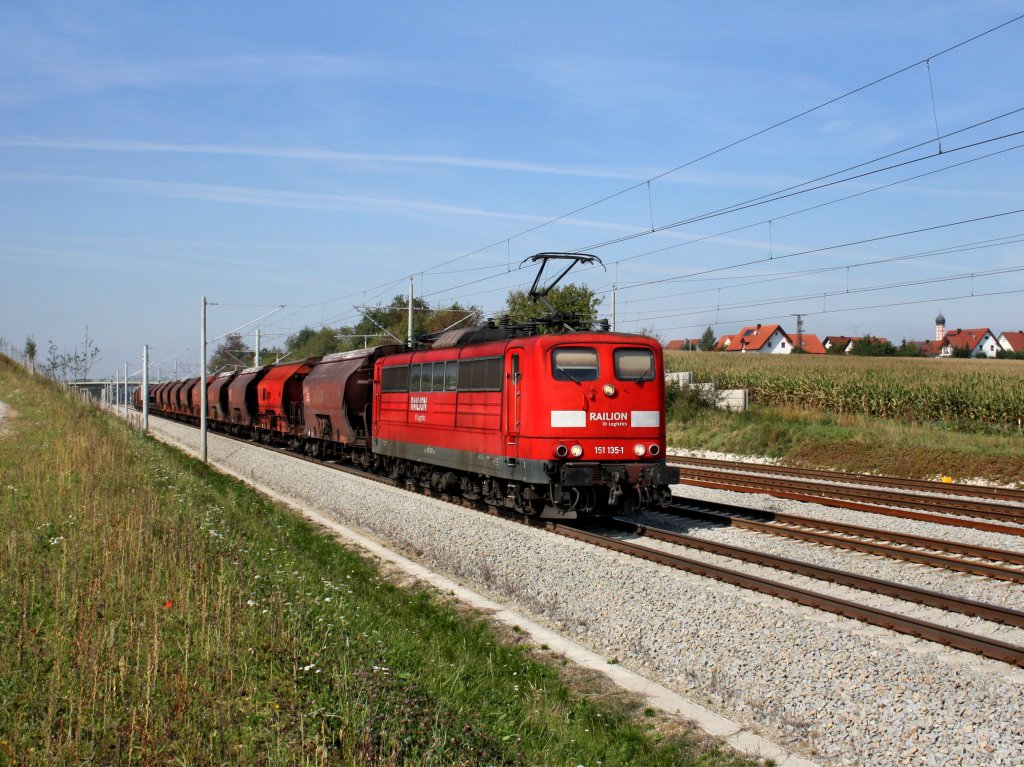Die 151 135 mit einem Tanos Zug am 24.09.2011 unterwegs bei Hattenhofen.