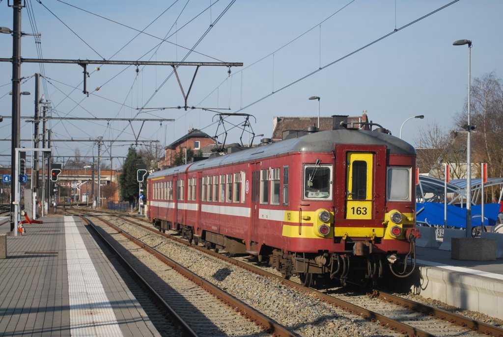 L-Zug Welkenraedt-Spa bei der Abfahrt am 22. Februar 2012. Die Tage der alten SNCB-Triebzüge der Baureihe AM 62-63 sind gezählt!
