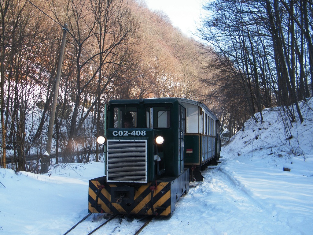 LÁEV C02 408 mit dem Foto-Sonderzug, in der Wald am 18. 02. 2012.