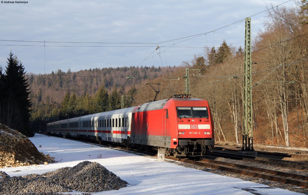 DB 101 043-8 schiebt IC 2036 Leipzig - Norddeich Mole, KBS 340 Leipzig - Magdeburg, fotografiert bei Ausfahrt Halle Saale Hbf. am 20.02.2012